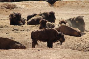 Der Nordamerikanische Bison lebte in großen Herden. Zum Ende des 19. Jahrhunderts gab es nur noch vereinzelte kleine Gruppen. Die Jagd hatte fast zur Ausrottung der imposanten Tiere geführt.