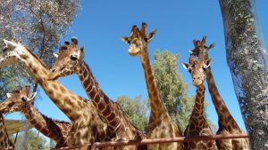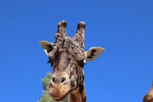 Giraffen können größer als 6 m werden. Die Tiere haben schöne Augen und wirken freundlich. Da es Wildtiere sind, sollte man aber durchaus Respekt vor ihnen haben.