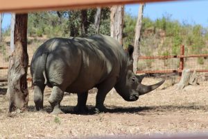 Das Nashorn ist schon sehr beeindruckend. Bis 2300 kg schwer wird so ein Ungetüm. Gut, dass ein Graben und ein Zaun zwischen uns sind.