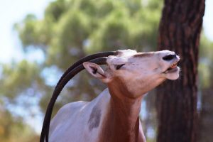 Die Oryx Antilopen sind in Afrika beheimatet. Die Tiere können bis 300 kg schwer werden. Die Möhren finden reichlich Anklang bei der Herde.